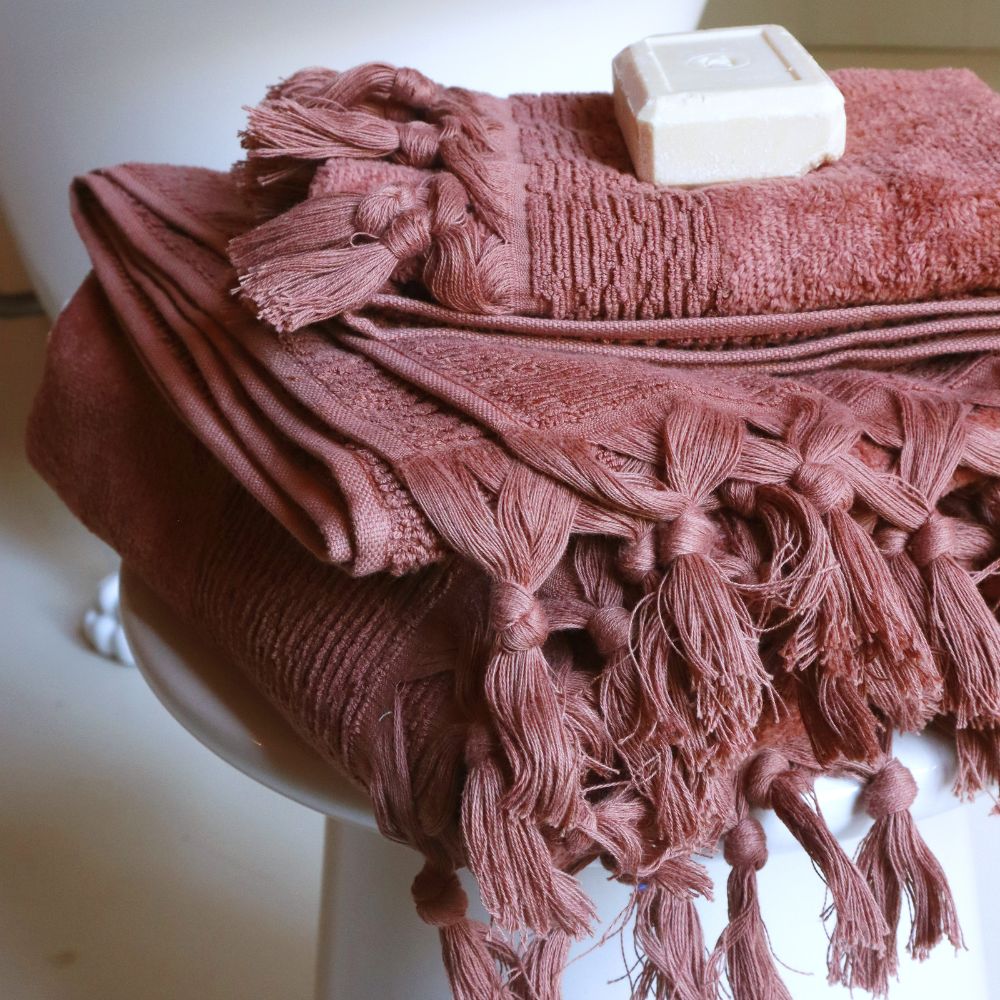 A la fois originales et élégantes de simplicité, on aime ces serviettes frangées bed and philosophy, disponibles dans des coloris très réussis! Ici en couleur Cinnamon (cannelle), une couleur chaleureuse en cette saison.